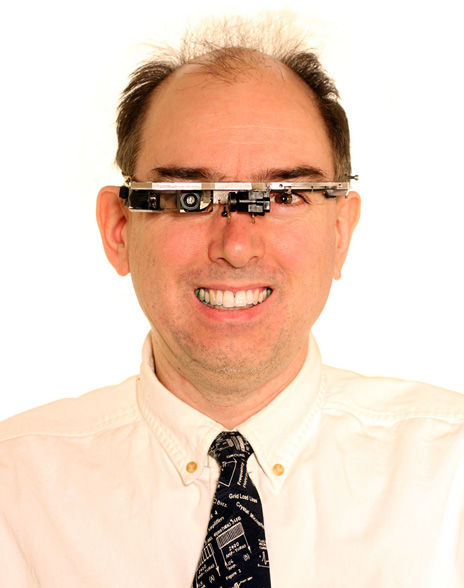史蒂夫·曼恩,1962年出生,今年50多了。早年求學(xué)于MIT,理學(xué)學(xué)士,工學(xué)碩士,1997年拿到了媒體藝術(shù)博士學(xué)位,F(xiàn)在在多倫多大學(xué)當(dāng)教授,在電器與計(jì)算機(jī)工程系,藝術(shù)與科學(xué)系各種跨界地牛掰閃亮著。 別看他這么逗樂(lè),實(shí)在人家被業(yè)界尊為“可穿著技術(shù)之父”。上個(gè)世紀(jì)(1999年)就開(kāi)始帶著圖中的EyeTap眼鏡四處拉風(fēng)。2012年吃麥當(dāng)勞時(shí),還由于帶著這樣酷炫的裝備被人打過(guò),在當(dāng)時(shí)引起了全球范圍的對(duì)于谷歌眼鏡類型硬件的大討論。 他在動(dòng)圖里曬的就是自己發(fā)明的三大神器:EyeTap眼鏡,智能腕表,和SWIM連續(xù)波形打印的AR技術(shù)。 曼恩主要的科技成就集中在計(jì)算機(jī)攝影技術(shù)方面:1993年,曼恩就第一次提出了“視頻軌道”算法;還發(fā)明過(guò)使用高壓液壓流體發(fā)生的樂(lè)器(好比,你可以表演彈個(gè)“水”); 上世紀(jì)八九十年代,曼恩開(kāi)發(fā)了CLI(命令行界面)和GUI(圖形用戶界面),均屬于通過(guò)與現(xiàn)實(shí)世界的天然動(dòng)作進(jìn)行交互的方法。后來(lái)還開(kāi)發(fā)了HCI基于聲樂(lè)的人機(jī)交互技術(shù)。 其總體的開(kāi)發(fā)思路也是很光鮮,瞄準(zhǔn)人類的各種天然行為研發(fā)交互技術(shù),并且越做越精細(xì)。 假如說(shuō)這是一個(gè)“搶大神,變身獨(dú)角獸”的時(shí)代,那么上圖左側(cè)笑地低調(diào)的Steve Feiner也被Meta集齊了。 史蒂夫·費(fèi)納是哥大計(jì)算機(jī)系的教授,2014年獲得了IEEE VGTC電氣電子工程師學(xué)會(huì)可視化和圖形技術(shù)委員會(huì)會(huì)議評(píng)比的虛擬現(xiàn)實(shí)終身成就獎(jiǎng)。 1996年他利用可穿透的顯示屏創(chuàng)建第一個(gè)戶外可移動(dòng)增強(qiáng)現(xiàn)實(shí)系統(tǒng)。其設(shè)計(jì)的The Private Eye頭部佩戴顯示器利用一個(gè)可擺動(dòng)的鏡子,掃描虛擬場(chǎng)景里垂直的LED陣列。探測(cè)屏幕對(duì)角線長(zhǎng)度為1.25英寸,不外圖像會(huì)顯示在18英寸間隔遠(yuǎn)的15英寸屏幕上。