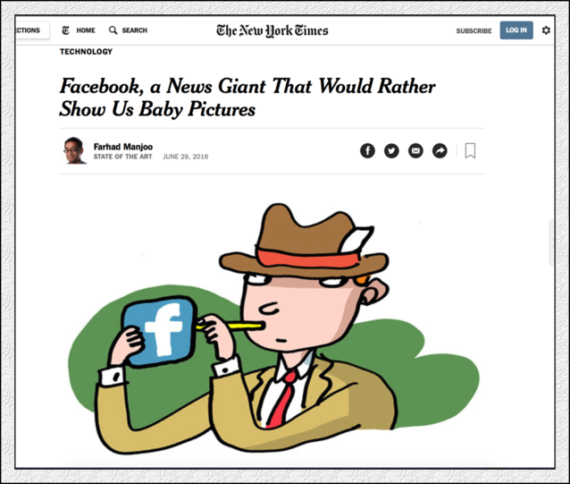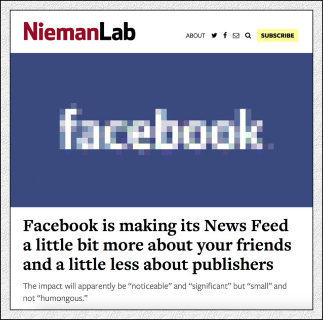 哈佛大學(xué)聞名的尼曼媒體實(shí)驗(yàn)室也發(fā)了評(píng)論,評(píng)論的標(biāo)題看起來實(shí)話實(shí)說,沒有出人意料之處,但恍惚處理的題圖把Facebook幾個(gè)字折騰得面目全非,顯然有些感情用事。