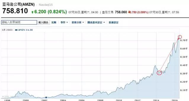 2014 年,貝佐斯被《哈佛貿(mào)易評(píng)論》選為 100 位卓越 CEO 第一名,當(dāng)選理由即股東回報(bào)率驚人:在調(diào)整國別后,1996 年到 2014 年的股東回報(bào)率,依然達(dá)到了 152 倍。 而且,這還不是終點(diǎn)。 從 2015 年至今,短短 19 個(gè)月內(nèi),亞馬遜的市值不僅超過了沃爾瑪,還超過了伯克希爾。本周末亞馬遜市值達(dá)到 3657 億美元,比 2015 年第一個(gè)交易日的 1438 億美元高出了 2200 億美元。假如你對(duì)這個(gè)數(shù)字沒有概念,可以把它想象成是四個(gè)“百度”。