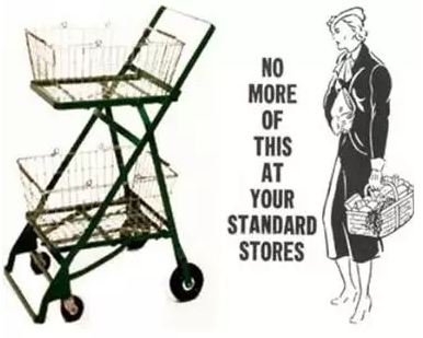 Goldman,猶太移民(沒錯(cuò),又是猶太人)。 1930年氟利昂被研制出來,從此之后冷柜開始大范圍傳播。到20世紀(jì)30年代末,美國一半以上的家庭用上了冰箱。這樣一來,消費(fèi)者購物的時(shí)候,不止買當(dāng)天吃的東西,可以一次性買更多的商品。 于是題目來了:在那個(gè)時(shí)候,自助超市只提供一個(gè)金屬絲織成的籃子。假如家庭主婦覺得拎著的東西太重,他們就自動(dòng)減少購買欲望。 Goldman開始意識到,商人面臨的題目,恰是顧客的痛點(diǎn),為了銷售更多商品,他必需找到讓顧客更省力的購物方式。 Goldman發(fā)現(xiàn)了一個(gè)大痛點(diǎn)。 當(dāng)時(shí)的解決方案是這樣的:當(dāng)?shù)陠T看到顧客一個(gè)籃子滿了之后,會幫顧客送到收銀臺,然后給他們一個(gè)空的籃子。事實(shí)證實(shí),這種做法有點(diǎn)太過復(fù)雜了。 930年氟利昂被研制出來,從此之后冷柜開始大范圍傳播。到20世紀(jì)30年代末,美國一半以上的家庭用上了冰箱。 這樣一來,消費(fèi)者購物的時(shí)候,不止買當(dāng)天吃的東西,可以一次性買更多的商品。 于是題目來了:在那個(gè)時(shí)候,自助超市只提供一個(gè)金屬絲織成的籃子。 假如家庭主婦覺得拎著的東西太重,他們就自動(dòng)減少購買欲望。Goldman在1970年回憶說,假如我們能讓主婦拎著兩個(gè)籃子購物,還能騰出一只手來挑選商品,我們的生意就能做的更大。 Goldman開始意識到,商人面臨的題目,恰是顧客的痛點(diǎn),為了銷售更多商品,他必需找到讓顧客更省力的購物方式。 Goldman發(fā)現(xiàn)了一個(gè)大痛點(diǎn)。 當(dāng)時(shí)的解決方案是這樣的:當(dāng)?shù)陠T看到顧客一個(gè)籃子滿了之后,會幫顧客送到收銀臺,然后給他們一個(gè)空的籃子。事實(shí)證實(shí),這種做法有點(diǎn)太過復(fù)雜。