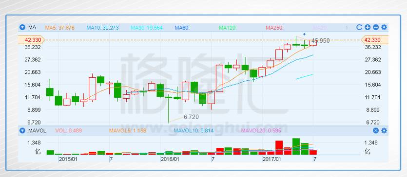 其間,微博81%的漲幅,不得不令人感嘆SNS(交際網(wǎng)絡服務)的魅力,可是仔細尋覓,咱們還漏了一家,那便是聲稱“約P神器”的排在微信、微博今后的第三大交際渠道——陌陌。 陌陌本年漲了多少呢?答案是:130%——雄冠全球。 陌陌月線圖: