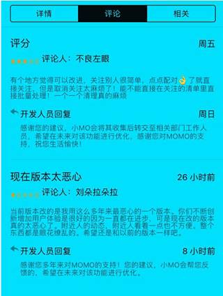 原先的鄰近的人呢?放最上面這么一個進口,這么不注重?玩陌陌的,不都是找鄰近的人么,這么一改我得操作好幾步。新加的幾個功用,點點、快聊、狼人殺、派對,除了狼人殺還有點用,別的功用誰會玩?一上來就視頻,為難不為難?并且,這不是我一自己的定見,你看appstore上成堆罵陌陌8.0改版的,一星評估數(shù)超越5星,評估前史最低,用力過猛了……