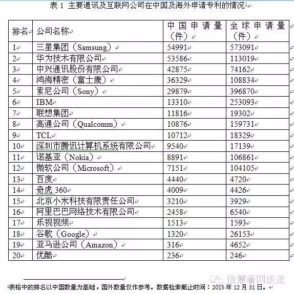 寫在前面: 專利,既是衡量一家企業(yè)立異投入的指標(biāo),也是判定企業(yè)科研成果的標(biāo)尺。 作為海內(nèi)互聯(lián)網(wǎng)領(lǐng)域的三大巨頭,百度、騰訊、阿里巴巴,即俗稱的“BAT”,歷來是備注關(guān)注的焦點(diǎn)。 那么,站在專利布局和保護(hù)領(lǐng)域來看,它們各自的專利意識如何?專利布局又有特點(diǎn)? 日前,由北京大學(xué)互聯(lián)網(wǎng)法律中央研究撰寫的《互聯(lián)網(wǎng)技術(shù)立異專利觀察講演(2015)》(以下簡稱《講演》)正式對外發(fā)布。 《講演》顯示 ,截止2015年12月31日,在挑選的20家分析對象中,三星、華為、復(fù)興、富士康、索尼、IBM、聯(lián)想、高通、TCL等企業(yè)在海內(nèi)的專利申請數(shù)目均在1萬件以上,其中,中國企業(yè)占5/9。 而海內(nèi)互聯(lián)網(wǎng)企業(yè)中,僅騰訊(9540件)一家接近1萬件,暫時領(lǐng)先于百度(4440件)、阿里巴巴(2458件)、360(4009件)等公司。 那么,就百度、騰訊、阿里巴巴等俗稱的“BAT”而言,三家公司的專利保護(hù)和布局,哪家更強(qiáng)?又各有什么特點(diǎn)? 專利規(guī)模:BAT中騰訊一馬當(dāng)先