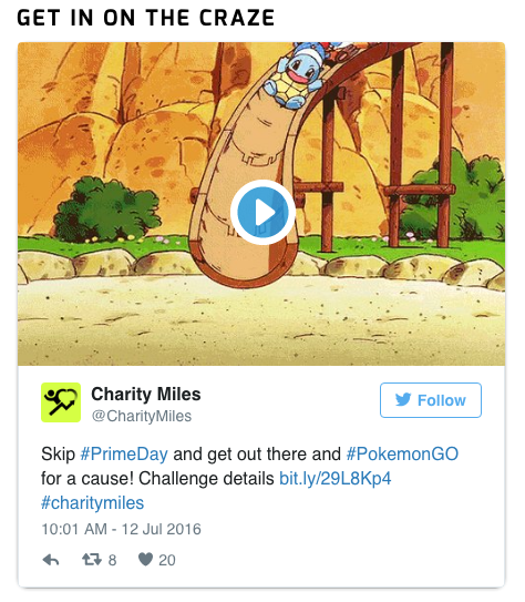 2. 別忘了,Pokémon GO還可以是今年最佳健身類APP 假如你的公司正好深耕于人們的運(yùn)動(dòng)健康數(shù)據(jù)的挖掘或是像微公益一樣為公益捐步數(shù),那么Pokémon GO將為你提供極大的助益。要知道Pokémon GO的玩家都走得超級(jí)多,他們得到四處抓精靈,走2KM/5KM 的路,只是為了孵精靈蛋。難怪會(huì)有人說(shuō)這是今年最佳的健身類APP,究竟國(guó)外為了抓小精靈天天走10公里當(dāng)即瘦下10公斤的勵(lì)志故事已經(jīng)發(fā)生。而Charity Miles就是一家專門人們的行走、步行或騎自行車的里程轉(zhuǎn)化為捐款的APP,