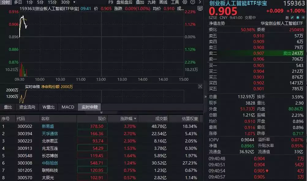 3日早盤,光模塊CPO等算力硬件持續(xù)活潑,新易盛漲超4%沖擊七連陽,天孚通訊漲超3%,中際旭創(chuàng)漲超1%。光模塊CPO含量超56%的創(chuàng)業(yè)板人工智能ETF場內(nèi)價(jià)格一度拉升超2%,
