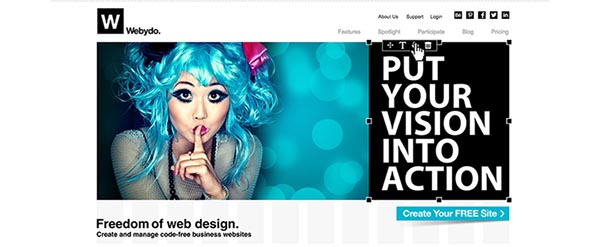 Webydo提供提高前輩的云端主機(jī)服務(wù),兼容尺度代碼,以及像Photoshop式的設(shè)計(jì)工作室,供設(shè)計(jì)師自由施展創(chuàng)意。專業(yè)設(shè)計(jì)師們能夠絕不費(fèi)力地在這個(gè)平臺(tái)上創(chuàng)建并治理絕佳的響應(yīng)網(wǎng)站,自由代碼。不僅如斯,你還可以通過白色標(biāo)簽主動(dòng)創(chuàng)建自己的品牌,還可以通過Webydo儀表板向客戶收費(fèi)。因?yàn)槠洫?dú)占的提高前輩特征,Webydo可能是設(shè)計(jì)師們最好的網(wǎng)站構(gòu)建平臺(tái)。
