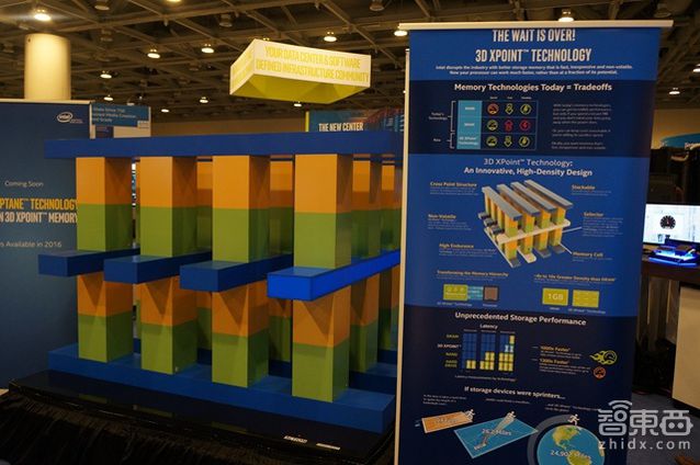 這是在IDF科再奇主題演講時最后收場的蜘蛛機器人群舞!在今年4月的深圳IDF上,其就展示了用基于Curie的手環(huán)控制一群蜘蛛機器人。如今的這群蜘蛛機器人是進(jìn)級版,甚至帶來了一個“母后”——其后頭部是基于RealSense的實感攝像頭,身體內(nèi)部是迷你電腦。 當(dāng)然,這套黑科技并沒有什么卵用,主要展示實感的可用性,激發(fā)開發(fā)者創(chuàng)意。科再奇稱,自己不以為蜘蛛機器人會帶下世界末日。 再來看一些技術(shù)控的新玩意: 1. 3D XPoint內(nèi)存技術(shù)