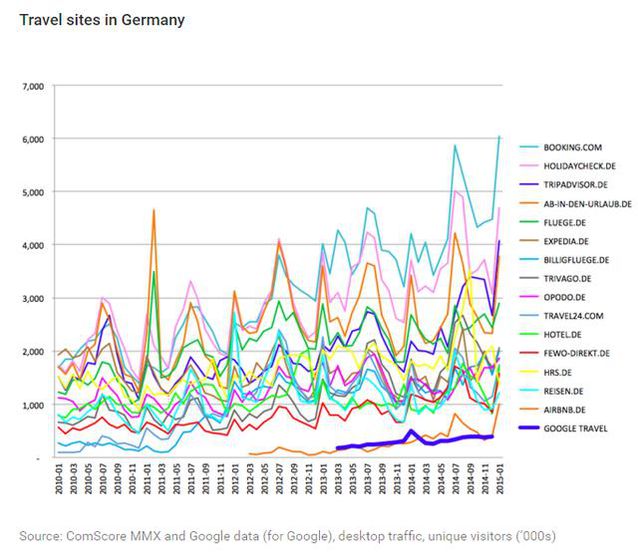 谷歌在遭到指控后作出回應(yīng),不無(wú)委屈地曬出這些產(chǎn)品在一些歐盟國(guó)家可憐的市場(chǎng)份額。谷歌表示,旅行搜索是一個(gè)競(jìng)爭(zhēng)激烈的垂直市場(chǎng),而自己的據(jù)有率實(shí)在少得可憐。