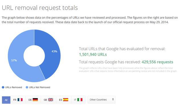 歐盟的這一決議計(jì)劃讓谷歌很為難,谷歌一向自夸是全球自由信息的提供者,如今卻要常常按歐洲各國(guó)政府的要求,從自己的數(shù)據(jù)庫(kù)中刪除信息。而且,讓谷歌更痛苦的是,歐盟還將是否刪除信息的決定權(quán),交給了谷歌自己。據(jù)谷歌稱,目前已經(jīng)處理了43萬(wàn)刪除哀求,涉及150萬(wàn)條url。