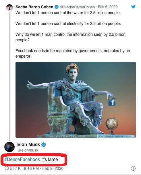 近日,特斯拉公司CEO埃隆·馬斯克(Elon Musk)在Twitter上發(fā)文呼吁刪去Facebook,由于它“太爛了”(it’s lame)。 Facebook由于一系列議題遭到了大量尖銳的批判,