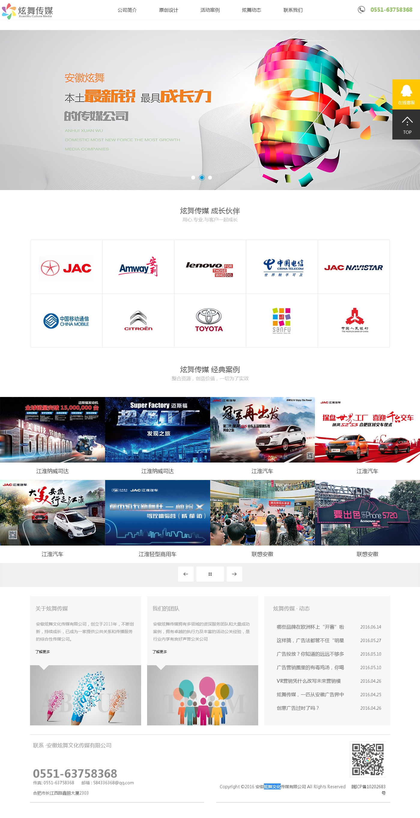 客戶案例:http: www ahxuanwu cn 安徽炫舞文化傳媒有限公司創(chuàng)立于2013年,不斷創(chuàng)新,持續(xù)成長已成為一家提供公共關(guān)系和傳播服務(wù)的綜合性