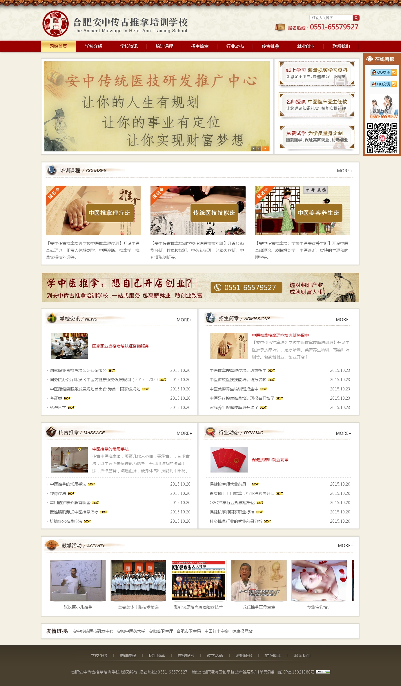 客戶案例:http: www azcgtn com 合肥安中傳古推拿培訓學校是安中傳古養(yǎng)生保健有限公司旗下的品牌培訓機構(gòu)。學校以中醫(yī)推拿按摩培訓為特色