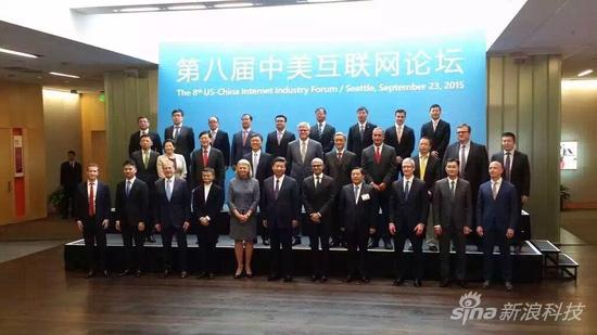 中國(guó)國(guó)家主席習(xí)近平和參加中美互聯(lián)網(wǎng)論壇的中美聞名企業(yè)的總裁合影 (西雅圖中文電臺(tái)臺(tái)長(zhǎng)蘇小元 拍攝) 中國(guó)國(guó)家互聯(lián)網(wǎng)信息辦公室主