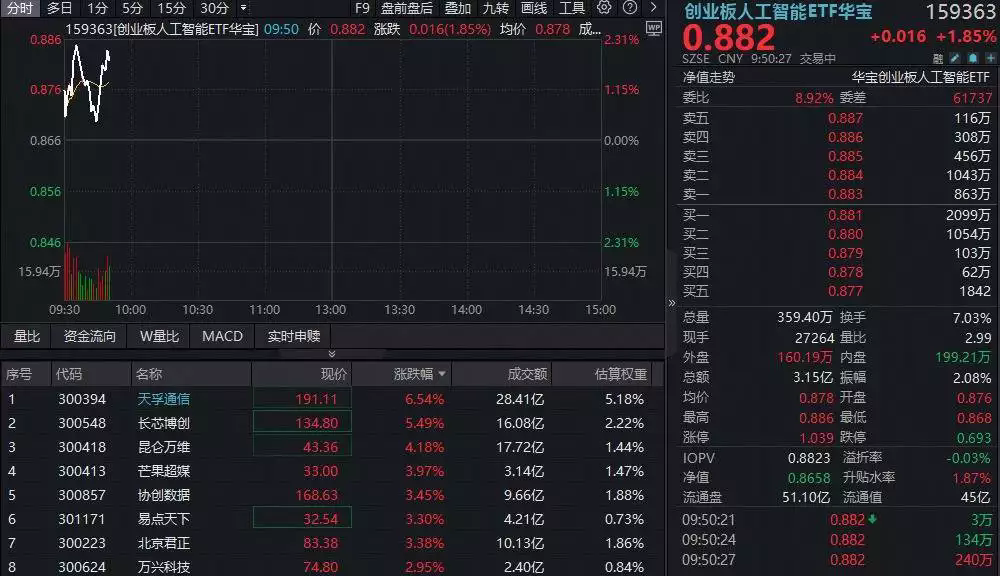 19日早盤,AI主線反彈回暖,光模塊含量超51%的創(chuàng)業(yè)板人工智能開盤沖高逾2%,光模塊等算力方向體現(xiàn)強勢。到發(fā)稿,天孚通信領(lǐng)漲超6%,