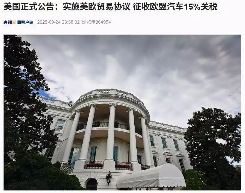 美國商務(wù)部與貿(mào)易代表辦公室于當(dāng)?shù)貢r間9月24日發(fā)布聯(lián)合公告,正式確認(rèn)對歐盟進(jìn)口汽車及汽車產(chǎn)品征收15%的關(guān)稅,此決定將追溯至2025年8月1日起生效。