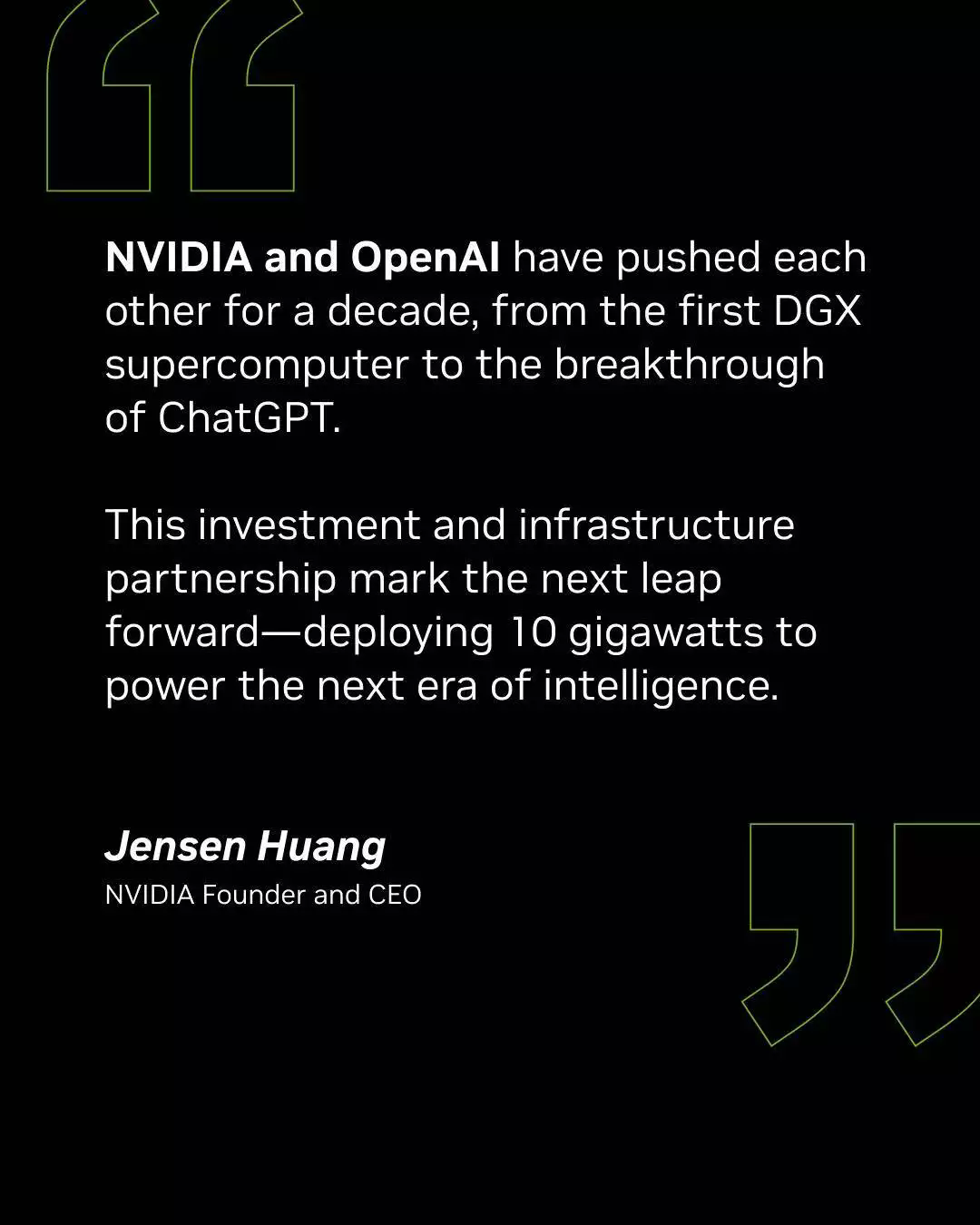 英偉達(dá)計劃向OpenAI投資高達(dá)1000億美元,共同建設(shè)規(guī)?涨暗腁I數(shù)據(jù)中心。9 月 23 日音訊,英偉達(dá)和 OpenAI 今天發(fā)布聲明,宣布將展開一項具有里程碑含義的戰(zhàn)略協(xié)作伙伴關(guān)系。