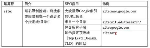 2.5.1 Google高檔查找運(yùn)算符(1) Google支持許多高檔查找運(yùn)算符,可以用它們來協(xié)助診斷SEO問題。表2-1概述這些查詢,用于SEO的辦法以及運(yùn)用示例。
