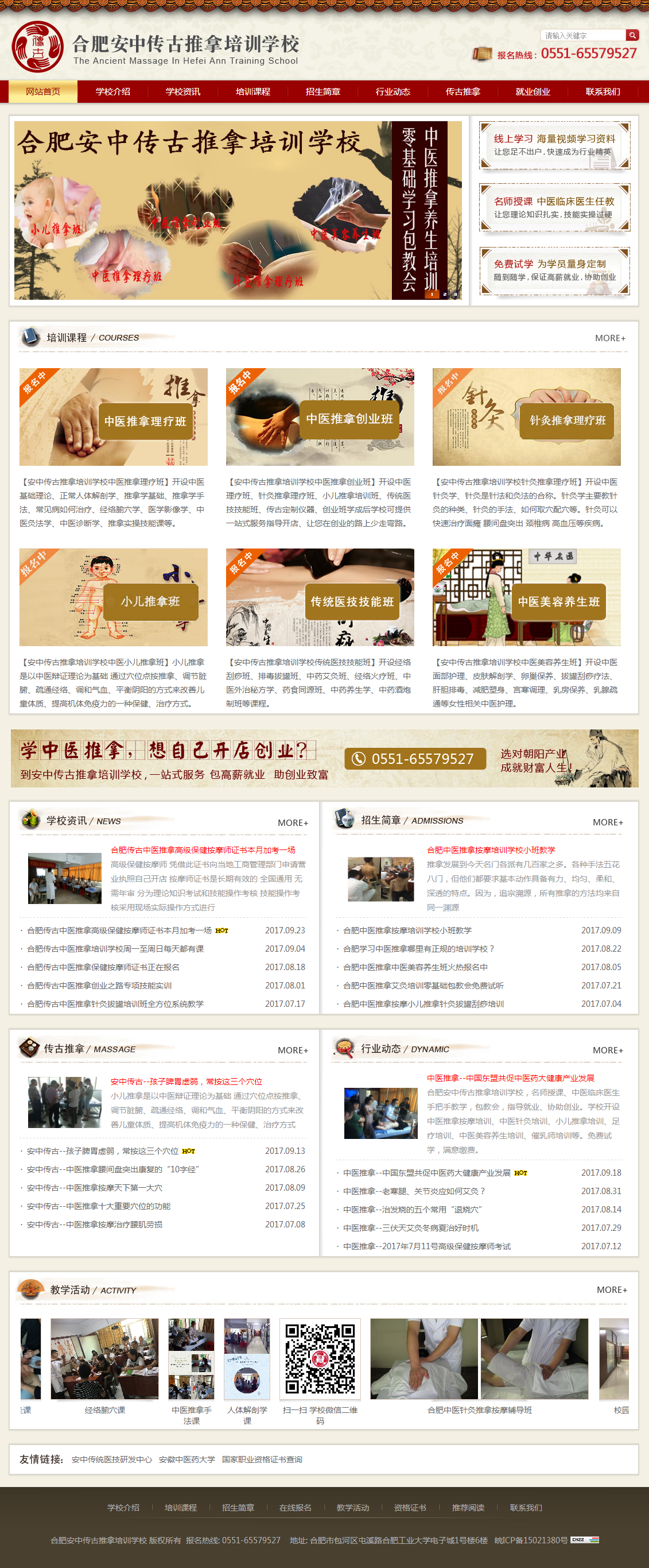 合肥安中傳古推拿培訓(xùn)學(xué)校以中醫(yī)推拿按摩培訓(xùn)為特色,專注于傳統(tǒng)醫(yī)技的研發(fā)推廣,傳統(tǒng)醫(yī)學(xué)技術(shù)(中醫(yī)推拿、艾灸、刮痧、拔罐、火療、刺血、針灸、穴位埋線、養(yǎng)生藥酒、藥食同源等)的推廣培訓(xùn),成人繼續(xù)教育考培輔導(dǎo),健康產(chǎn)品及服務(wù)的研究開發(fā)等。學(xué)校自成立以來,培養(yǎng)了一大批具有現(xiàn)代化養(yǎng)生知識(shí)和理念的專業(yè)人才,提高了保健養(yǎng)生人員的學(xué)歷層次,自主研發(fā)的“保健養(yǎng)生酒”系列、“藥食同源”保健食品系列深受廣大學(xué)員和市場的喜愛。