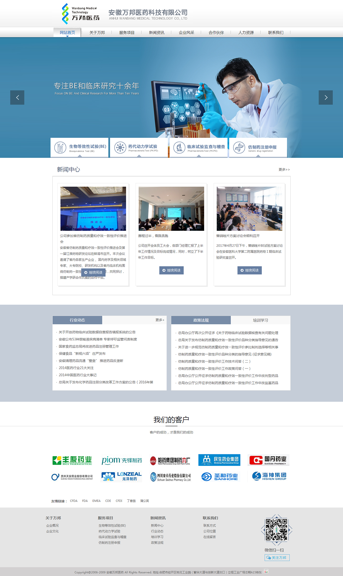 安徽萬(wàn)邦醫(yī)藥科技有限公司于2006年成立于科教之城合肥,是一家為藥品生產(chǎn)企業(yè)提供仿制藥一致性評(píng)價(jià)、人體生物等效性試驗(yàn)、人體和動(dòng)物藥代動(dòng)力學(xué)試驗(yàn)、臨床稽查和監(jiān)察等技術(shù)服務(wù)的國(guó)家高新技術(shù)企業(yè)。目前與國(guó)內(nèi)多個(gè)臨床機(jī)構(gòu)擁有緊密的合作關(guān)系,已完成生物等效性試驗(yàn)和藥代動(dòng)力學(xué)試驗(yàn)共計(jì)200余項(xiàng),項(xiàng)目經(jīng)驗(yàn)豐富,是國(guó)內(nèi)新藥臨床研究領(lǐng)域較有影響力的CRO公司之一。